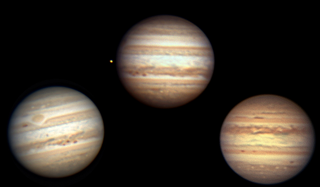 Jupiter Left - The Great Spot Centre - Europa orbiting Right - Polar Storms